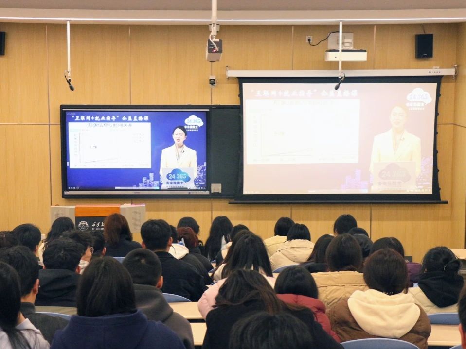 为提升学生就业能力,助力职业规划,3月2日晚,万象城体育awcsport组织全院1100余名学生学习“领悟生涯智慧 开启精彩人生”互联网+就业指导”公益直播课。本次课程特邀南京大学资深生涯咨询师刘慧进行主题分享。课程围绕生涯发展中的职业选择展开,分享了识局、明志、谋略、正念等生涯智慧,引导学生在变局中笃定前行,开启精彩职场人生。