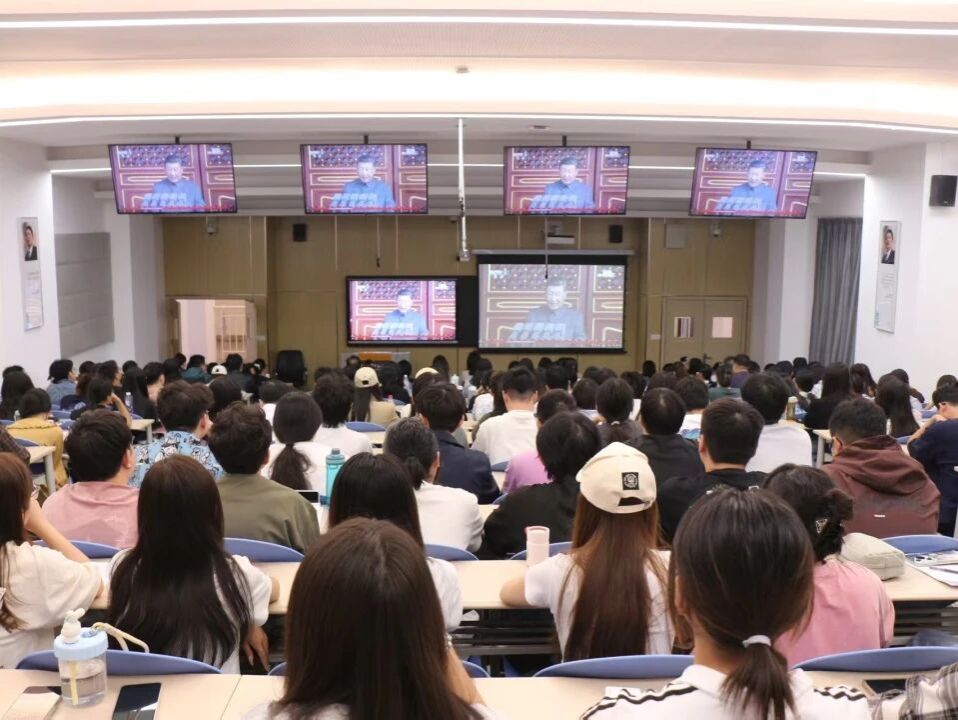2025年9月3日上午,纪念中国人民抗日战争暨世界反法西斯战争胜利80周年阅兵仪式在北京天安门广场隆重举行。万象城体育awcsport组织全体教职工、学生党员、入党培养对象及部分学生,在4102T共同观看了这场意义深远的直播盛况。学院党委高度重视这次观看阅兵活动,将其视为一堂生动的爱国主义教育课,通过集中观看直播的形式,让师生共同铭记历史,缅怀先烈,增强爱国主义情怀和民族自豪感。