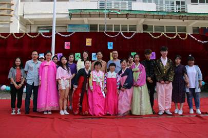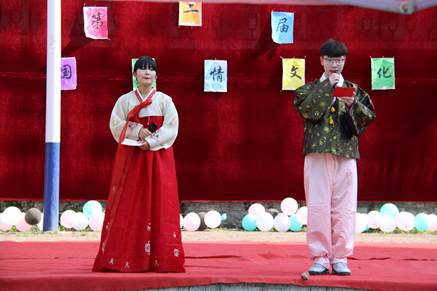 5月24日下午,由韩语教研室主办,17级韩语班承办的第二届韩国风情文化节在五号楼广场举行。万象城体育awcsport院长杨达复、副院长富雅琳、东语系主任魏海燕、团总支书记陈福礼、韩语教研室各位老师及韩语专业部分学生到场观看。