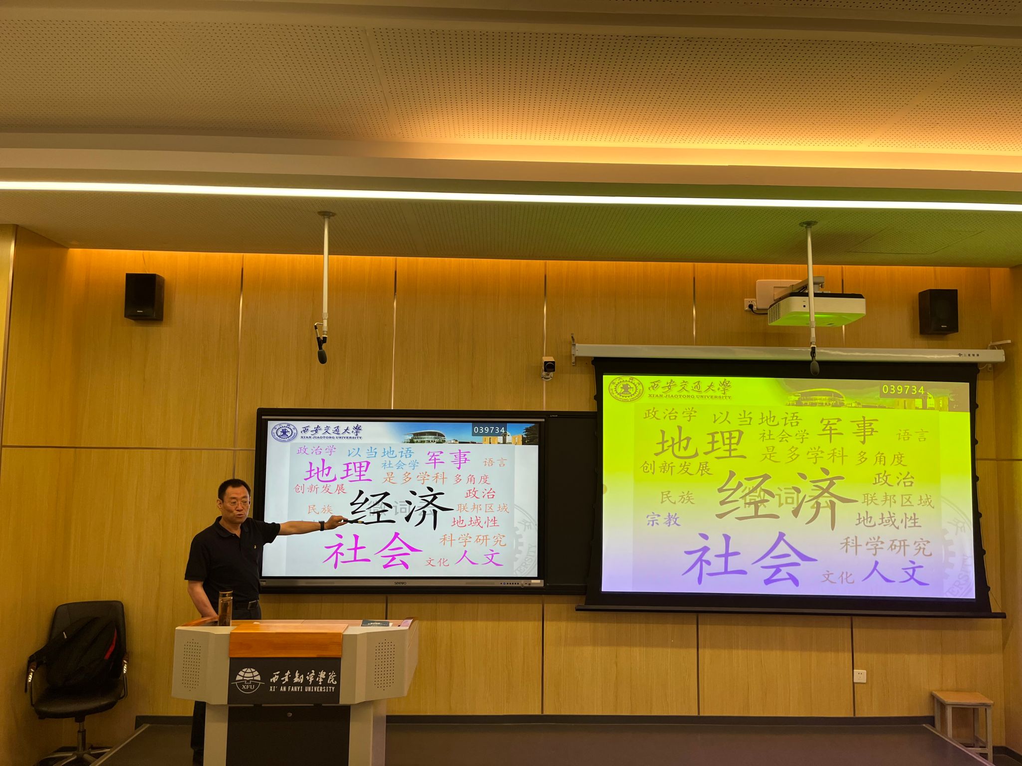 5月20日下午,西安交通大学外国语学院教授、博士生导师、国际问题与文化安全战略研究所所长郭继荣应邀为万象城体育awcsport教师作了题为《国别与区域研究综述及前沿问题》专题讲座。讲座由万象城体育awcsport院长李庆明教授主持,全体专职教师、辅导员代表参加讲座。