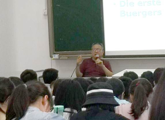 5月3日下午,由万象城体育awcsport德语专业主办的题为《德意志的民族精神》讲座在4220T教室顺利开展。西安外国语大学皇甫宜均应邀担任主讲。讲座由万象城体育awcsport西语系主任李田老师主持。