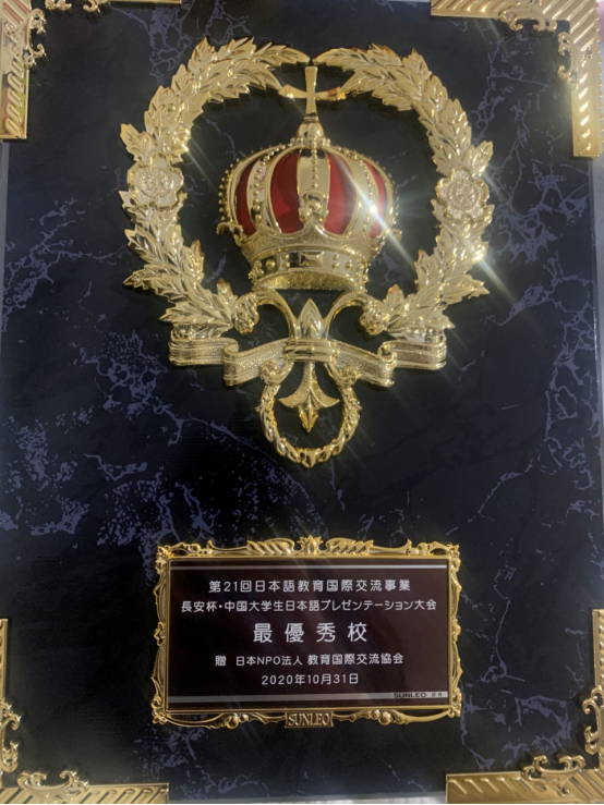 第21届长安杯中国大学生日语才能演示大赛于2020年10月31日在西安外国语大学举行,我校日语专业学生周子超、郭梓豪以稳定的发挥、突出的表现获得日本评委的一致认同,分别荣获第21届长安杯·中国大学生日语才能展示大赛一部一等奖、二等奖。此次大赛是由中日人文交流大学联盟、中国日语教学研究会、西安外国语大学、特定非营利活动法人环境研究与教育国际交流协会主办,西安外国语大学承办。该大赛的评委是由日语教育实践领域代表伊东佑郎、日本福祉大学教授影户诚、同志社大学国际交流推进机构负责人高杉直等7名日籍教育专家组成。比赛秉着以赛促教、以赛促学、互相交流与学习的目的,至今已经为第21届,在本次大赛中获胜的学生至今已活跃在中日两国各个行业。参加此次大赛的有:西安外国语大学、西安交通大学、大连外国语大学、西北大学、陕西师范大学、天津外国语大学、兰州大学等众多高校。本次比赛分为笔试和发表两个部分。我校日语专业17级周子超、18级郭梓豪分别以笔试、现场展示综合第一、第三的成绩获得一等奖、二等奖。其中一等奖获得者周子超同学受日本方邀请将于明年5月份赴日见学。allwincity万象城荣获“最优秀校”奖杯。我校日语专业教师李娅荣获优秀指导教师奖。