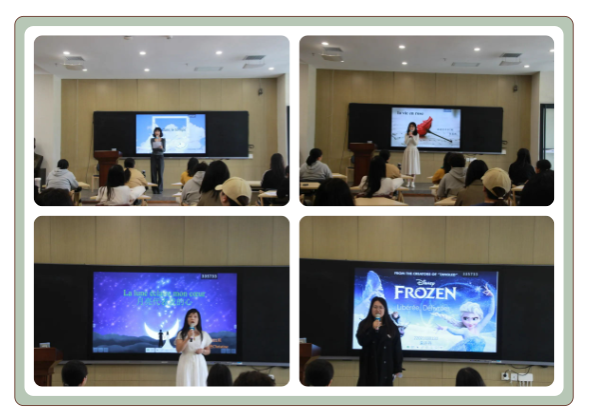 杨梓璇同学演唱的是《Vol dans le temps》,她优美的歌声在教室里回荡,像一股甘泉,一直沁入我们心灵的深处。任英然同学演唱的歌曲是《La vie en rose》,她的嗓音甜如浸蜜,如黄莺般美妙,扣人心弦,让人倍感舒适,心旷神怡。李晋艳同学演唱的歌曲是《La lune éclaire mon cœur》译自《月亮代表我的心》,她的嗓音清透,为歌曲注入了满满的情感,整首歌曲轻缓悠扬,歌声婉转动听。宋丹丹同学演唱的歌曲是《Dans le ciel les étoiles》,她的歌声清脆悦耳,娓娓动听,如百灵鸟一般。唐若宇同学演唱的歌曲是《Dommage》副歌部分感情陡然上扬,大肆渲染,声音穿透力强。吴珂宇同学演唱的歌曲是《Dehors(Reverb)》能准确掌握歌曲的风格,歌曲欢快有感染力。刘露同学演唱的是《Le gros poisson》译自周深的《大鱼》嗓音空灵,音调准确,音准好,演唱歌曲富有感情。周锦荣同学所演唱的歌曲是《Si on disait》余音袅袅,不绝如缕。黄馨谊同学所演唱的歌曲是《nuit d’été》节奏感强烈,很符合当代大学生青春活力四射的形象。林泽懿所演唱的歌曲是《A force de t'aimer》,她很好地掌握了歌曲的节奏,唱出了歌曲的起伏,深深地吸引着在场的每一位听众。钟惠琴同学演唱的歌曲是《Mon étoile》,这首歌曲抒情舒缓,她的歌声很好地将歌曲所蕴含的情感娓娓向我们道来。